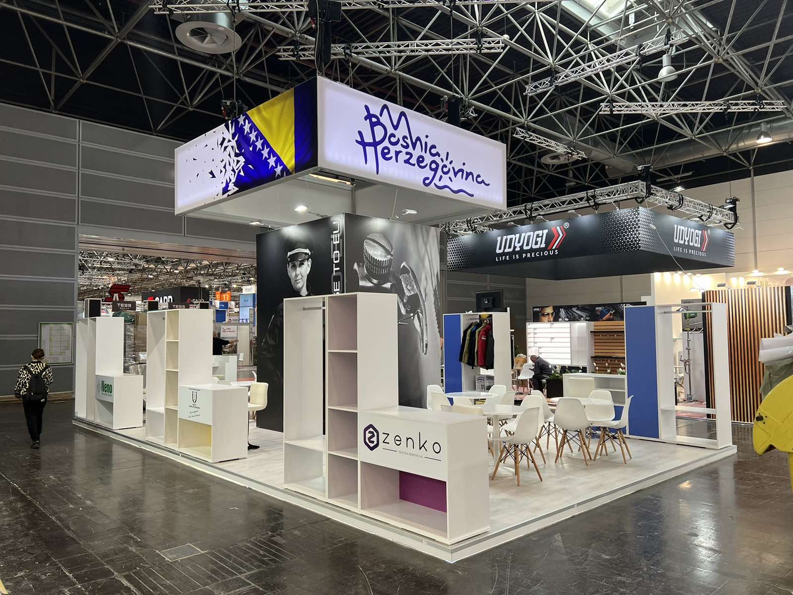 Naša kompanija je za Vanjskotrgovinsku komoru Bosne i Hercegovine vršila uslugu izrade, montaže, demontaže, transporta te skladištenja štanda za potrebe sajma “A+A” 2023 u Dizeldorfu.