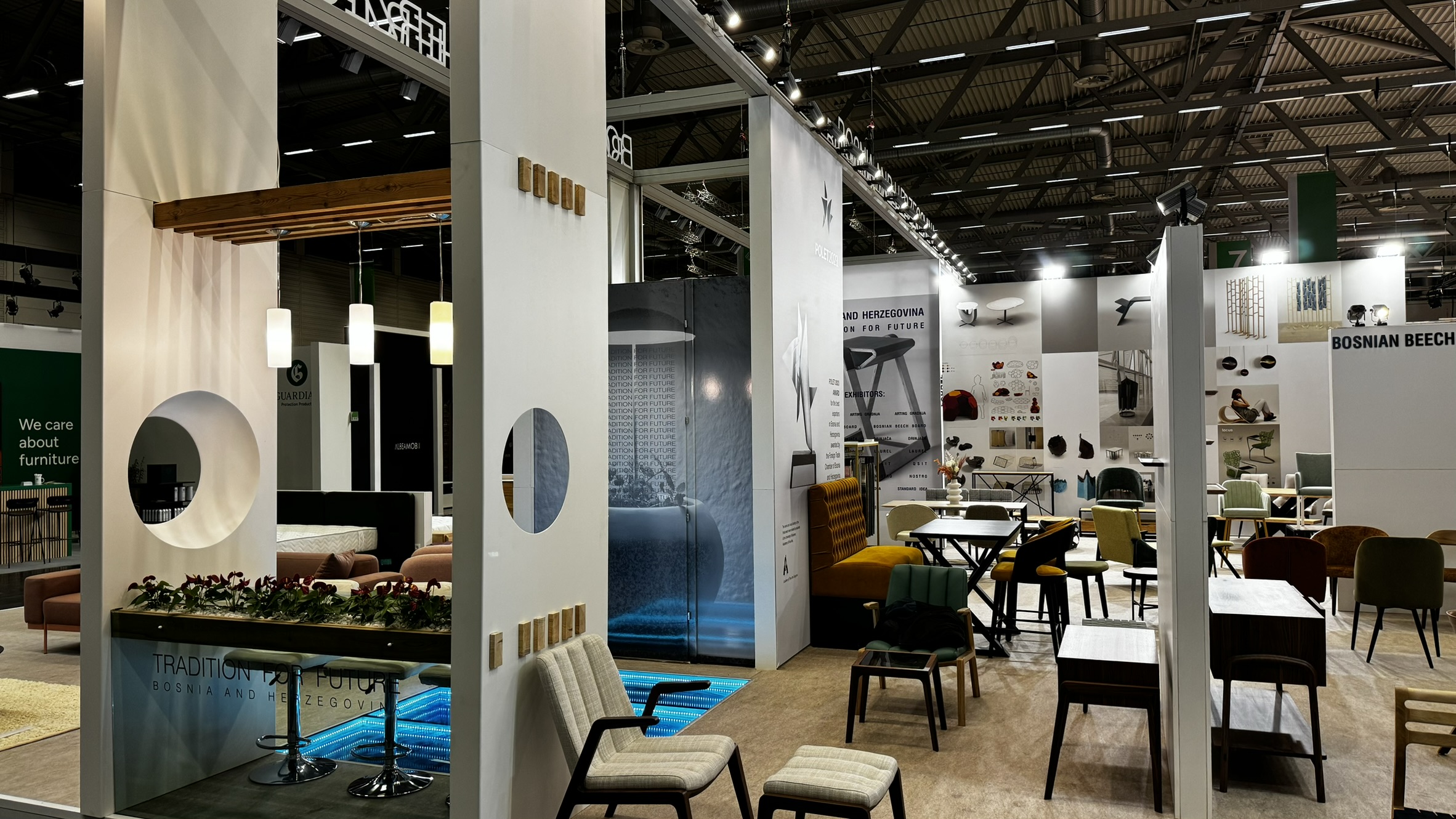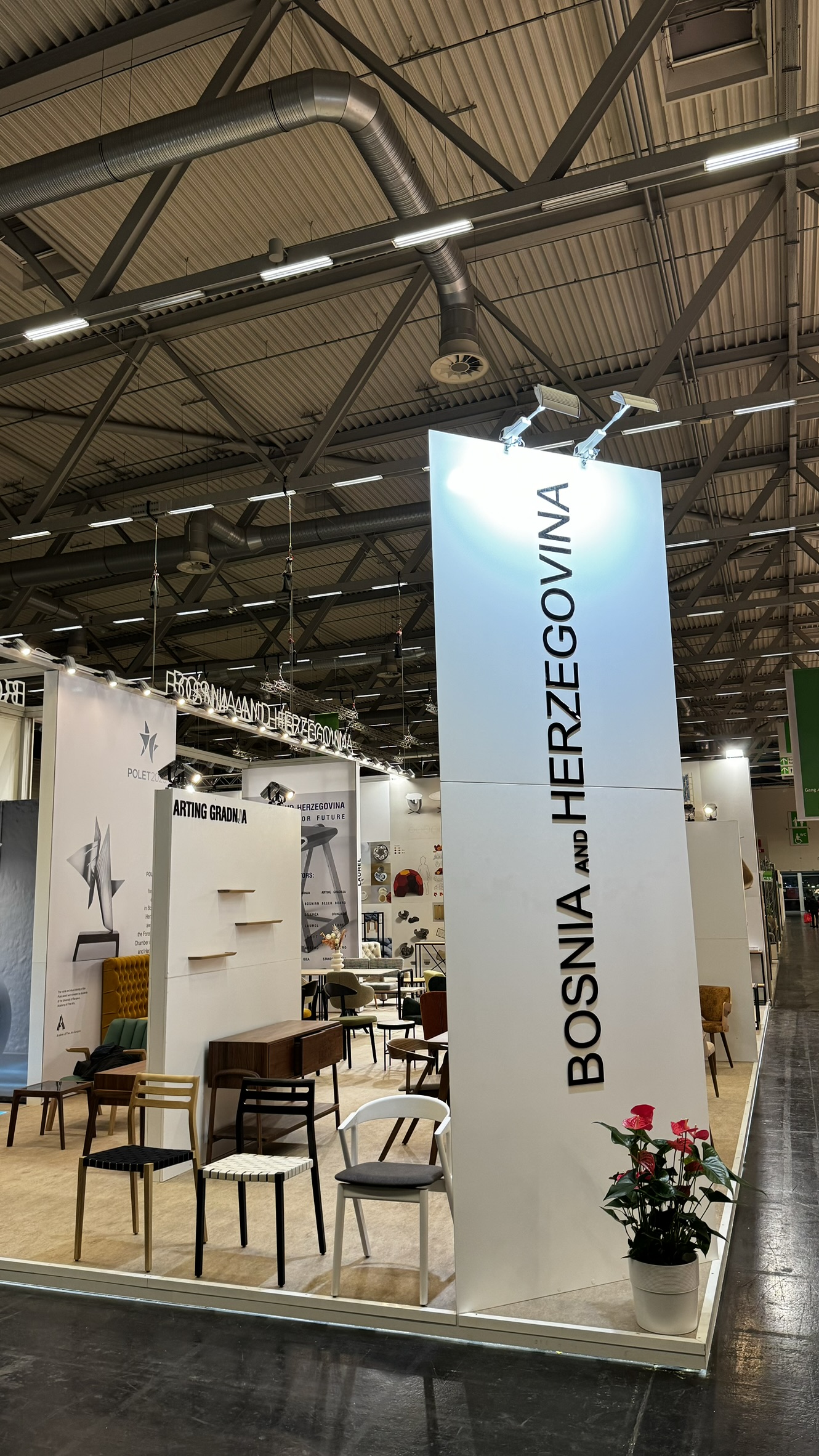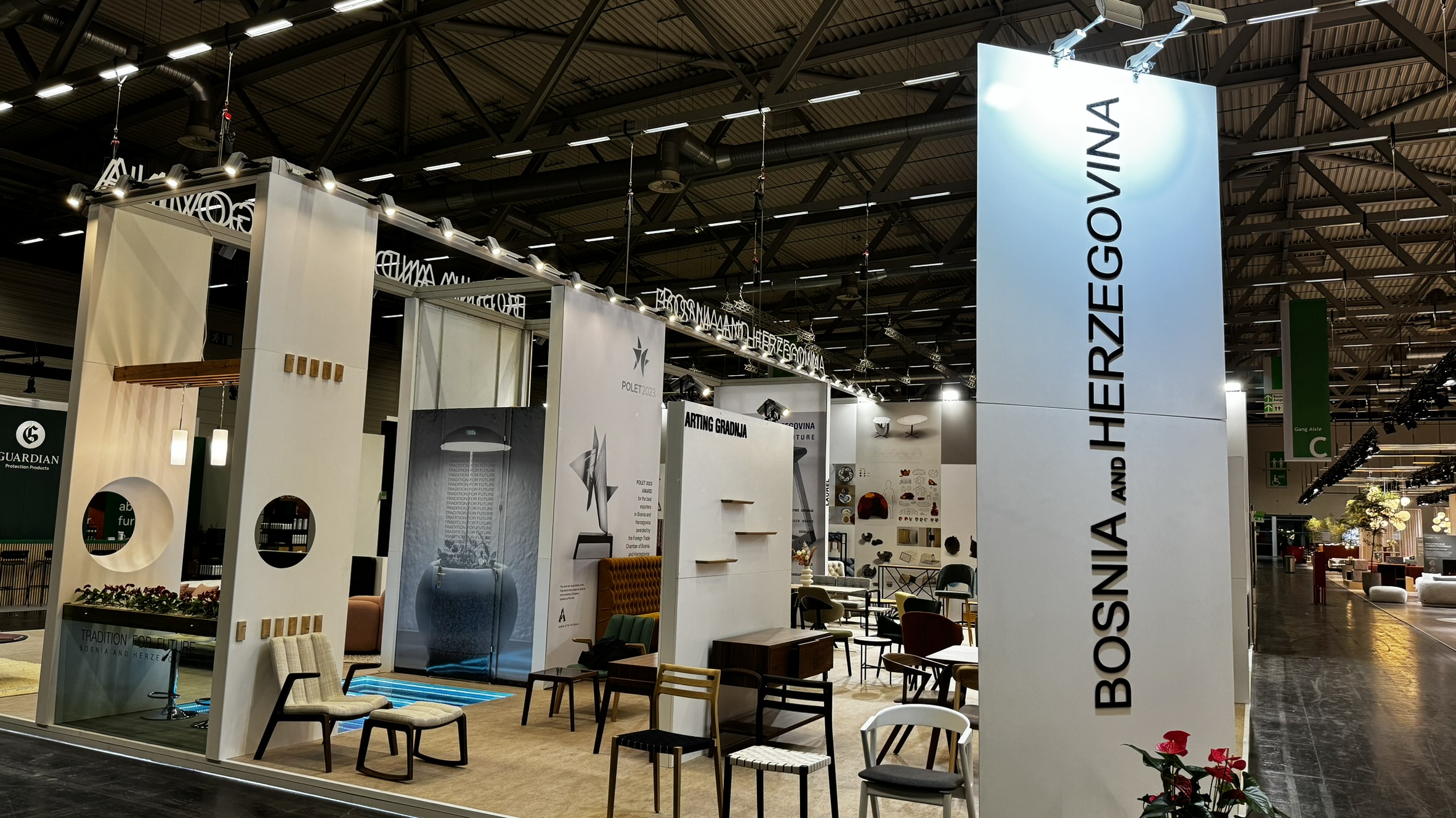 Naša kompanija je za Vanjskotrgovinsku komoru Bosne i Hercegovine vršila uslugu izrade, montaže, demontaže, transporta te skladištenja štanda za potrebe sajma namještaja “IMM Cologne” 2024 u Kelnu.